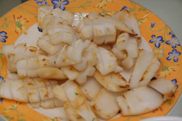 軟絲切片之後 直接放入平底鍋